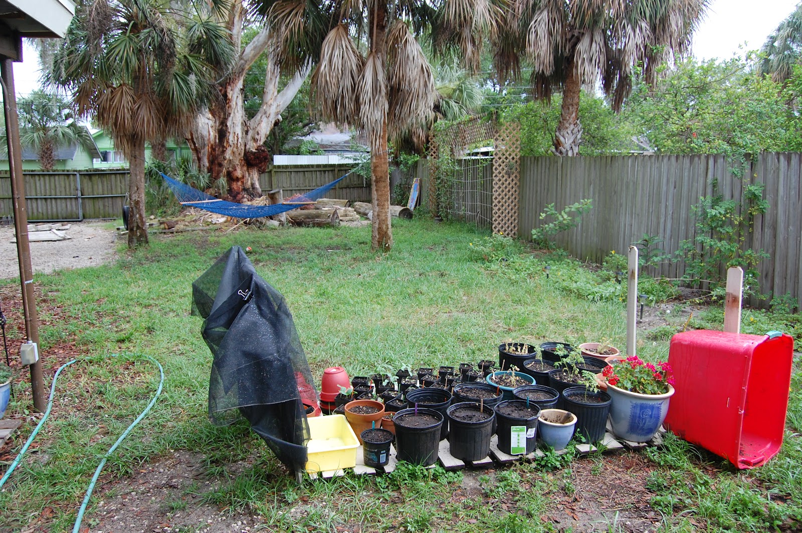 But when I stepped back and looked up I realized that we had been feeding the neighbor's cabbage palm for the whole time. It's roots came up into the soils we built and, no doubt, stole some of our nutrients! Curse you neighbor's cabbage palm!